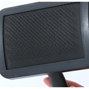 Håll ditt husdjurs päls frisk, slät och trasselfri med denna stora slicker-groomingborste. Den är utformad för både hundar och katter och har fina nålar i rostfritt stål med skyddande spetsar som avlägsnar löst hår, minskar fällningen och masserar djurets hud varsamt. Det halkfria handtaget ger ett bekvämt grepp, medan de rundade nåländarna gör borstningen säker och lugnande, vilket bidrar till att förbättra blodcirkulationen och förhindra knutar.