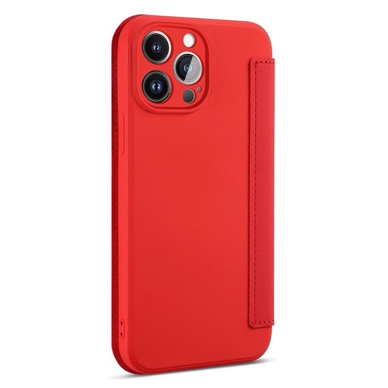 För iPhone 14 Pro Skin-touch Flytande Silikon Skyddsfodral Korthållare, Stativfunktion, Stötsäkert skal