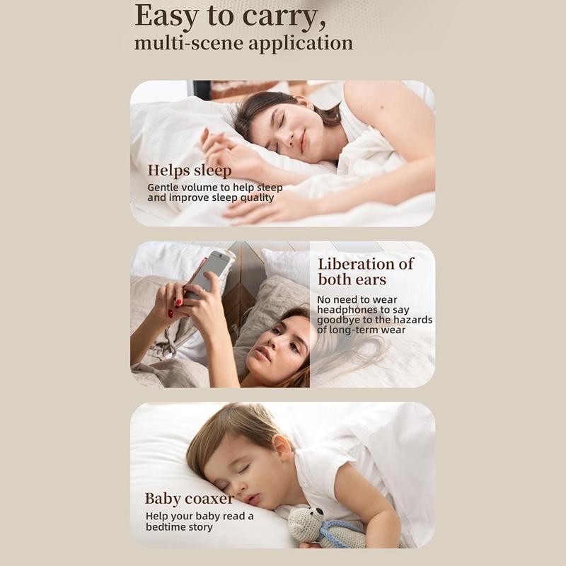 - Placering under kudden: Njut av mjukt ljud direkt under din kudde för en lugnande rutin vid sänggåendet