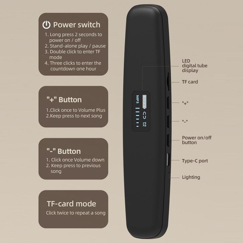 Upplev en ny nivå av vilsamma nätter med SMB-06 Smart Sleep Aid Under-Pillow Music Box. Denna innovativa benledningshögtalare låter dig njuta av lugnande ljud eller sömngivande musik utan att störa andra. Den trådlösa Bluetooth-funktionen kopplas enkelt ihop med dina favoritenheter, medan den diskreta designen under kudden ger ett klart och behagligt ljud när du somnar.