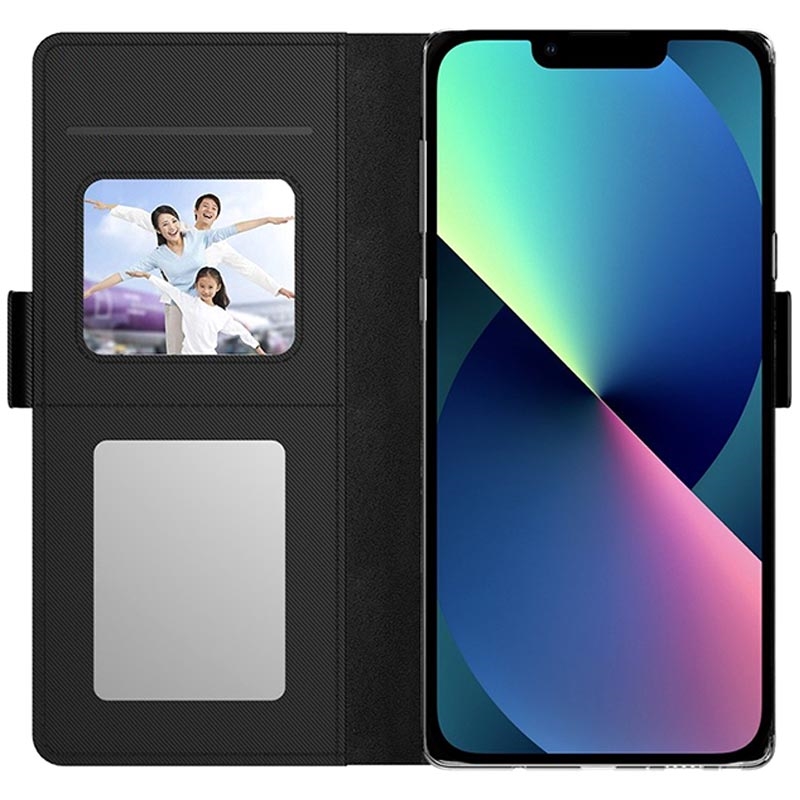 - Premiumfodral med sminkspegel och kortfickor till iPhone 13