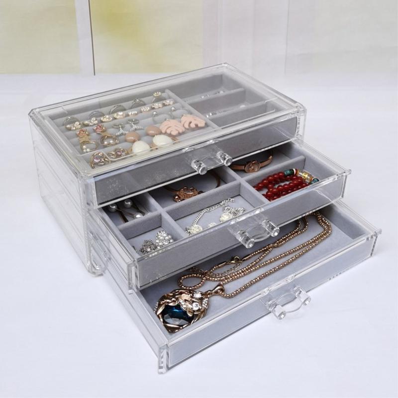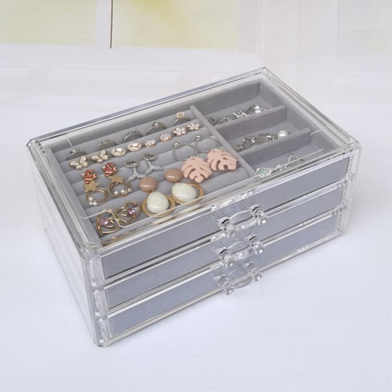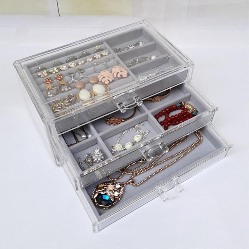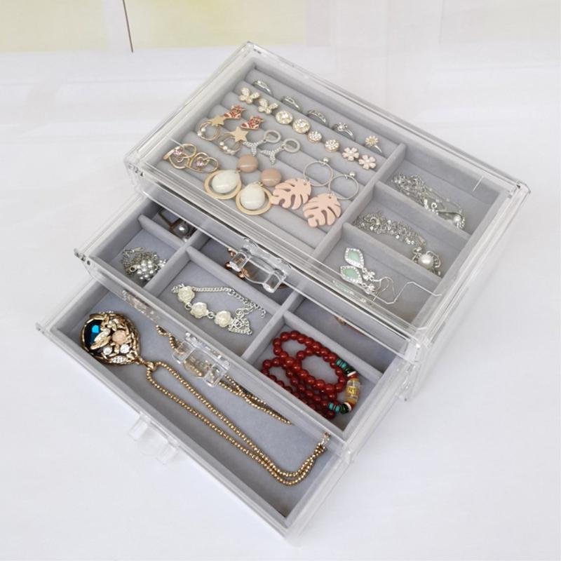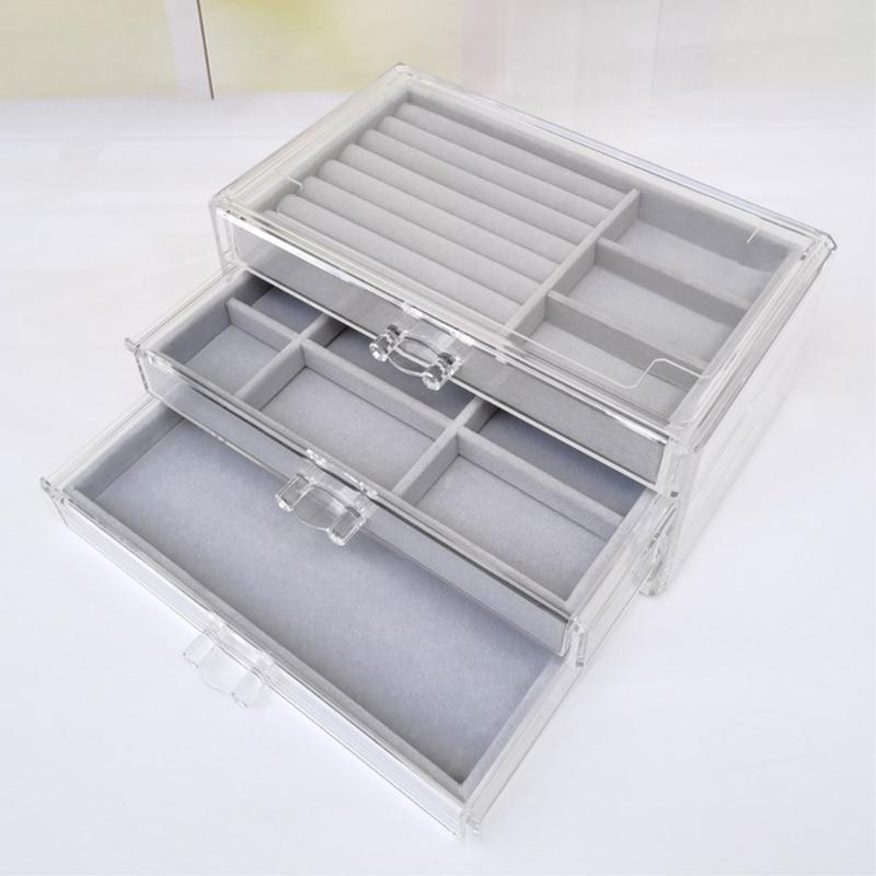 - Genomskinligt akryllock gör det enkelt att se och snabbt välja dina smycken utan att öppna lådan