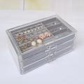 Smyckesförvaringsbox i 3 lager med löstagbara brickor - sammetsklädd förvaring av akrylsmycken för halsband, ringar, örhängen och smink