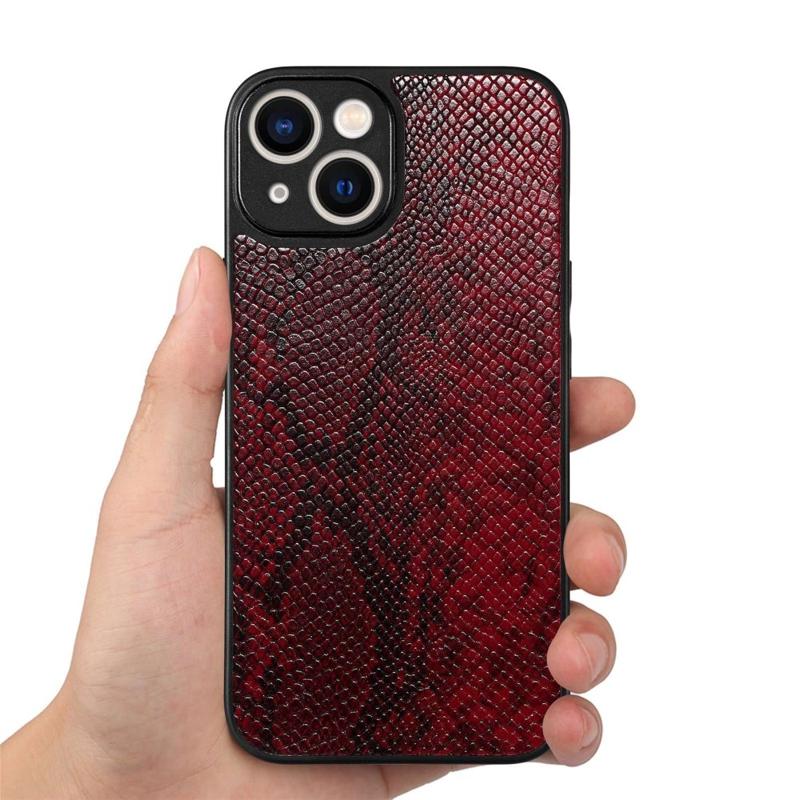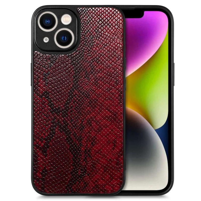 För iPhone 14 Stötsäkert Skal med Ormskinnsstruktur och Precisa Utskärningar PU Läderbelagt TPU-Skal