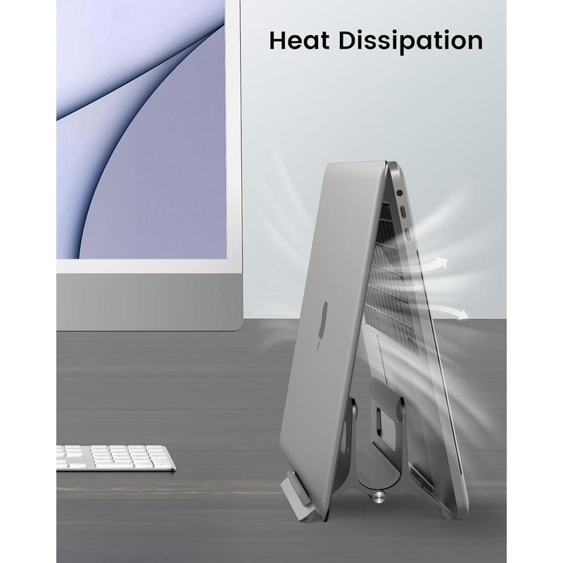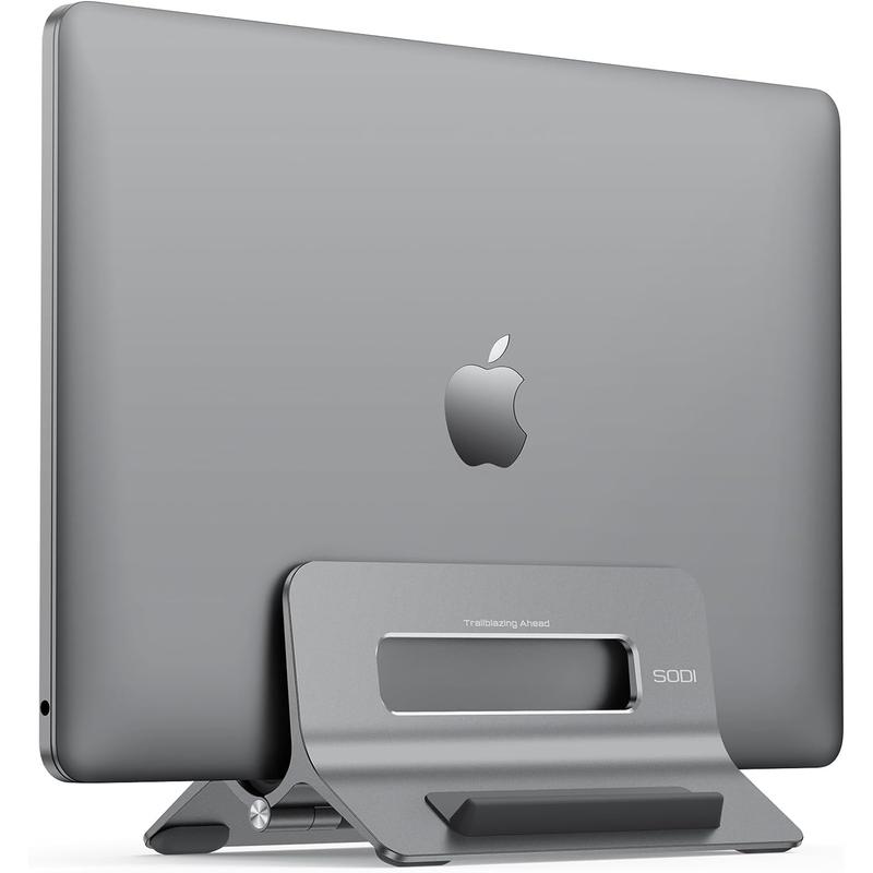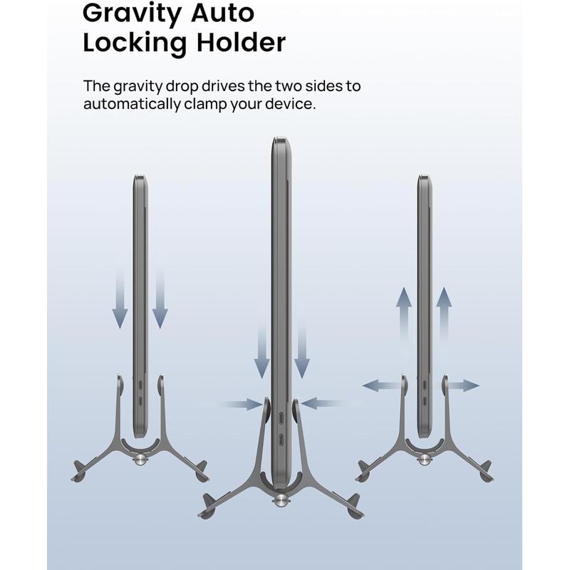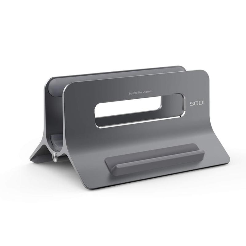 SODI SMS300 Vertical Gravity Auto-Locked Laptop Stand erbjuder en elegant och praktisk lösning för att organisera din arbetsyta. Detta stativ är utformat för att hålla bärbara datorer, surfplattor och andra enheter som är upp till 1,05 tum tjocka och säkerställer stabilitet och förbättrar värmeavledningen.