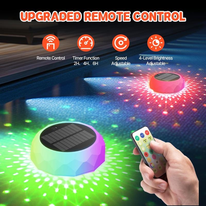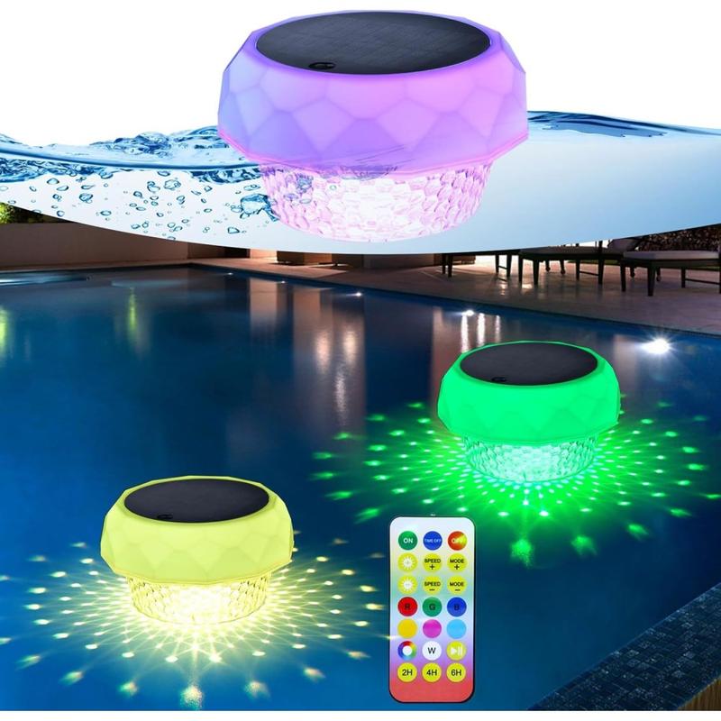 Solcellsdriven flytande poolbelysning med desinficeringsbox och RGB-lysdioder - fjärrstyrd timerlampa, 170 × 100 mm IPX7