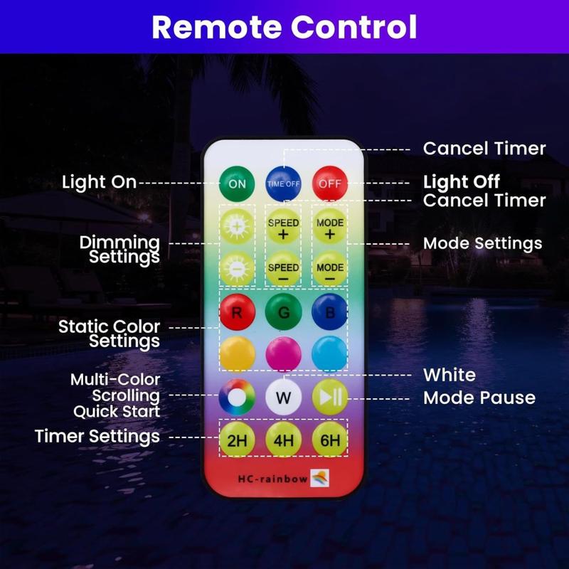 - Med fjärrkontrollen kan du ändra färg eller stänga av utan att gå ner i vattnet