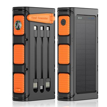 Håll dig uppkopplad även under tuffa förhållanden med denna solcellsladdare med vev på 20000mAh - en praktisk bärbar laddare utformad för utomhusbruk, resor, camping och beredskap. Genom att kombinera hög batterikapacitet med flera laddningsmetoder ger den dig större flexibilitet när vanliga strömkällor inte finns tillgängliga. Med stöd för solcellsladdning, handvevad laddning och snabbladdning via kabel är denna robusta powerbank byggd för användare som vill ha pålitlig reservkraft både i vardagen och i mer utmanande miljöer.