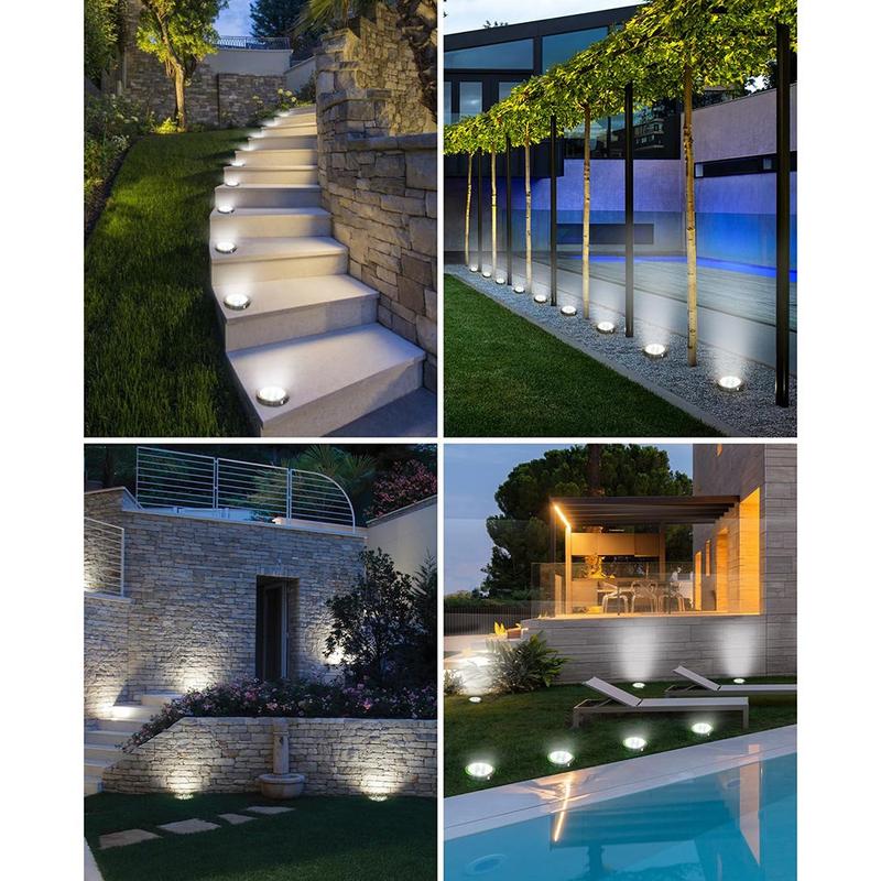 - Åtta ljusstarka lysdioder per skiva - bred, jämn 360° halo förhindrar snubbelrisker och framhäver trädgårdens särdrag.