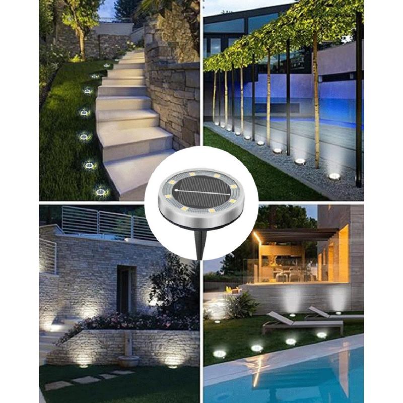 Solcellsbelysning - 8 LED-lampor i rostfritt stål för gräsmattor, IP65 vattentät, automatisk påslagning/avstängning
