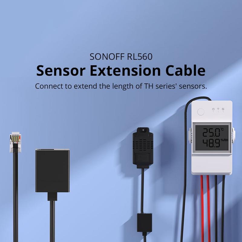 Utöka din sensorplacering för mer flexibel temperatur- och fuktighetsövervakning med Sonoff RL560 förlängningskabel. Denna 5m RJ11-kabel är utformad för Sonoff TH-serienheter som TH16 och TH20 och fungerar med kompatibla RJ11-sensorer som THS01 och DS18B20. Den hjälper dig att placera sensorer längre bort från omkopplingsmodulen för bättre mätnoggrannhet i rum, skåp, växthus eller utrustningsutrymmen. RJ11-kontakten stöder hot-plugging för en stabil och bekväm anslutning.
