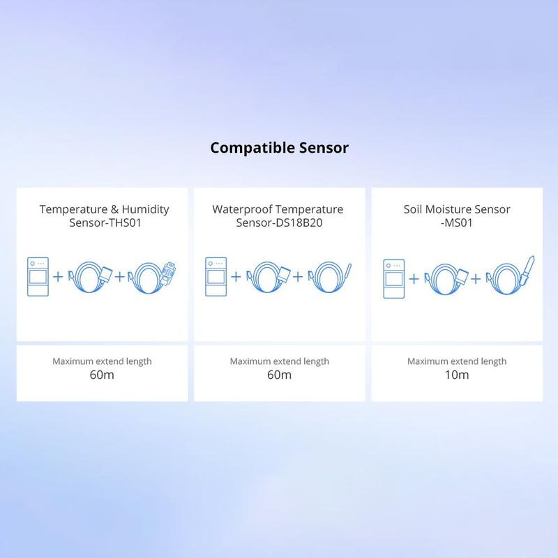 - Fungerar med Sonoff RJ11-sensorer som THS01 och DS18B20 med RJ11-uttag