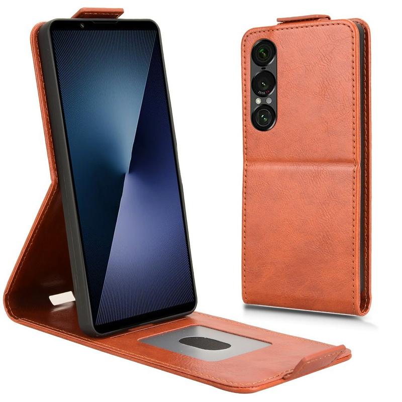 Vertikalt flipfodral för Sony Xperia 1 VII - magnetisk stängning, stativfunktion, korthållare