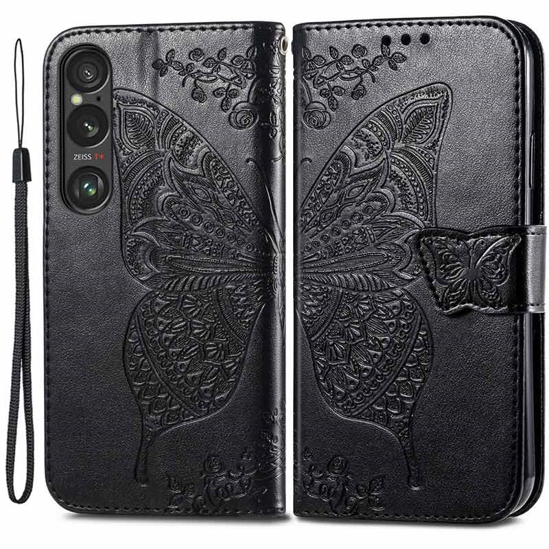 - Högkvalitativt plånboksfodral för Sony Xperia 1 VI med fjärilsmönster