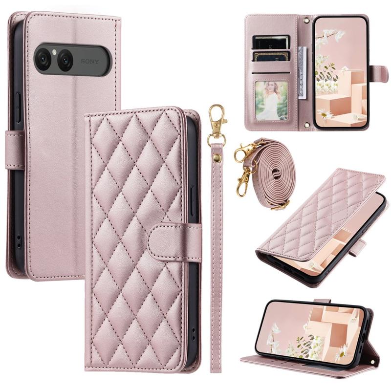 Lyxigt quiltat plånboksfodral med axel- och handledsrem för Sony Xperia 10 VII - skyddande fodral med rombmönster