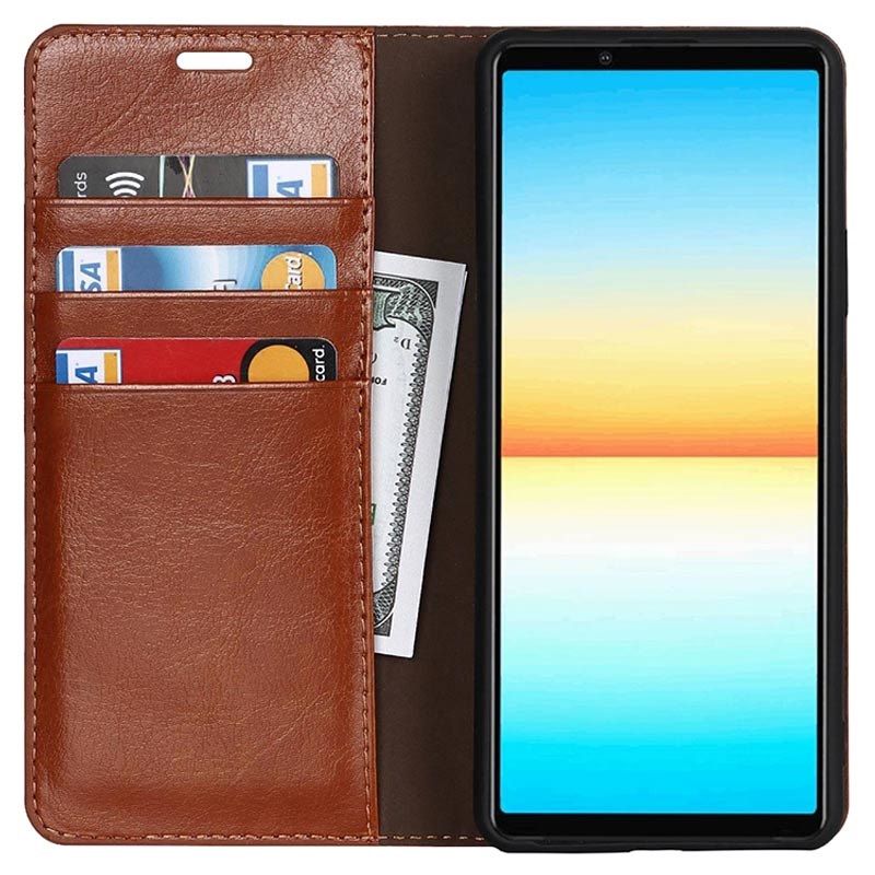 Plånboksfodral i Läder med Stativ för Sony Xperia 10 IV