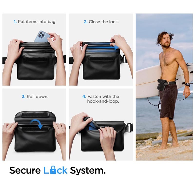- Spigen A621 strand set: vattentät midjeväska, vattentätt flytande fodral