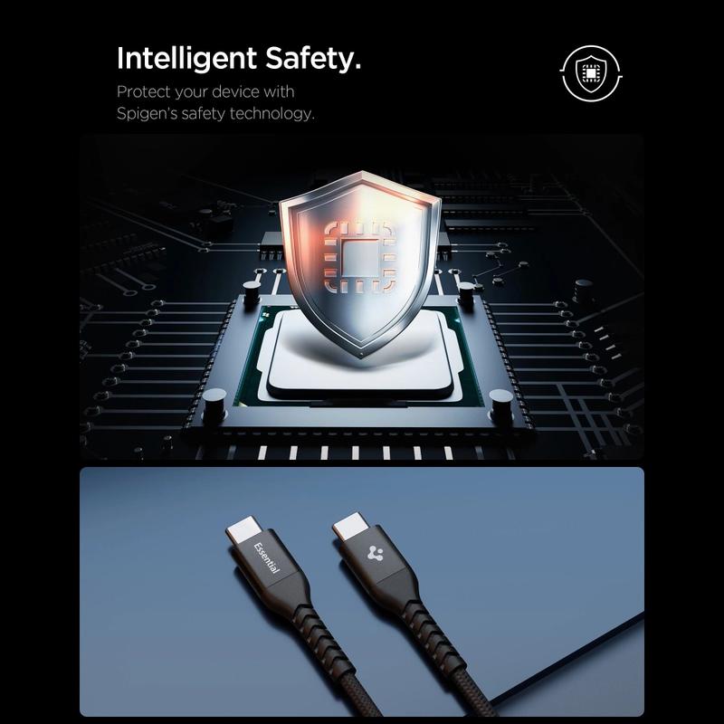 Kabeln är byggd för långvarig användning och använder Spigens Dura Bend-design för att förbättra flexibiliteten och motståndskraften mot upprepad böjning. Förstärkta ändar hjälper till att skydda de mest utsatta områdena från daglig slitage, medan det certifierade E-Marker-chipet hjälper till att hantera strömmen på ett säkert sätt genom att känna igen den anslutna enheten och justera laddningsparametrarna därefter. Detta bidrar till stabil laddning och ger extra skydd mot överhettning, överladdning och kortslutning.