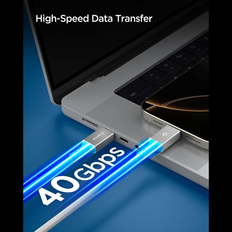 Spigen Essential EB24015CC är en högpresterande USB-C till USB-C-kabel som är utvecklad för avancerade användare som behöver en kabel för laddning, ultrasnabb dataöverföring och högupplöst video. Med en strömförsörjning på upp till 240W är den redo för krävande bärbara datorer, surfplattor och smartphones, medan USB4 Gen 3-datahastigheter på upp till 40 Gbps gör överföring av stora filer och dockningskonfigurationer smidiga och effektiva. Lägg till Thunderbolt 3/4-kompatibilitet plus DisplayPort 2.0-stöd för skarp 8K-utgång, så får du en kabel av professionell kvalitet som är utformad för moderna arbetsstationer, resekit och daglig tillförlitlighet.