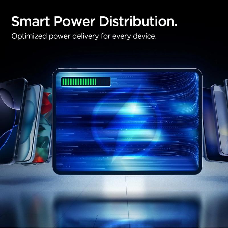Spigen Essential EA2210 erbjuder den perfekta kombinationen av kapacitet, snabbladdning och tunn portabilitet. Med Quantum Boost-teknik, en förstklassig aluminiumkonstruktion och dubbla snabbladdningsportar är den utformad för dem som behöver maximal prestanda i en kompakt, resevänlig storlek.