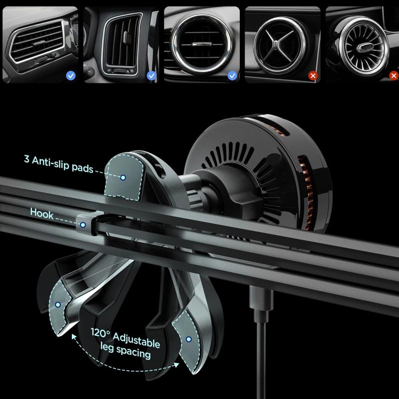 Spigen Essential EV25MFAQ Qi2.2 Peltier Magnetisk MagSafe-hållare för luftventil i bilen / 25W trådlös laddare med aktiv kylning