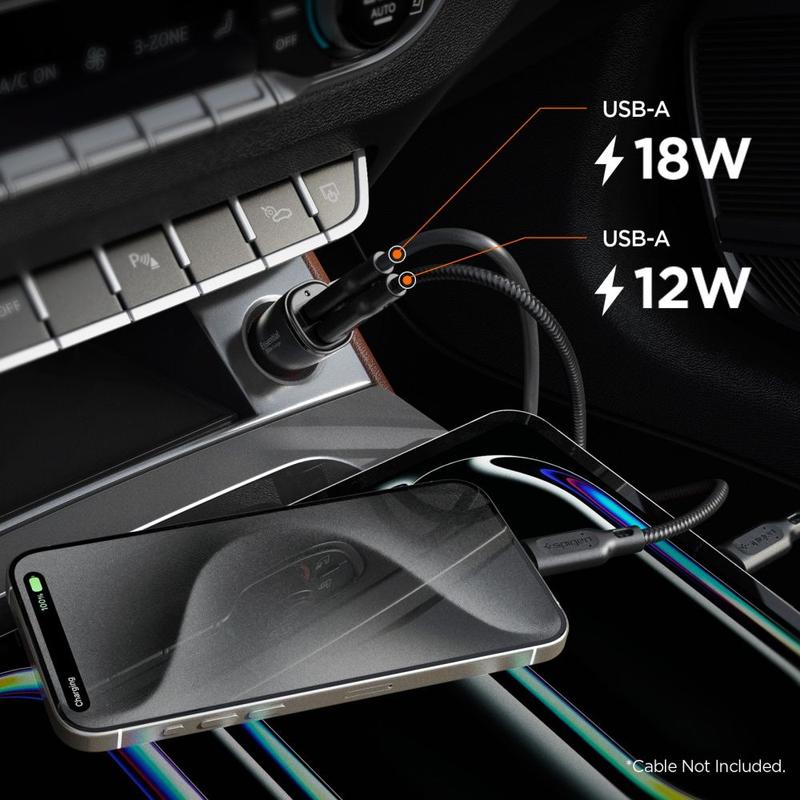 Utrusta ditt fordon med Spigen Essential EV302 2-portars billaddare, så att dina enheter förblir strömförsörjda och redo att användas, oavsett vart din resa tar dig.