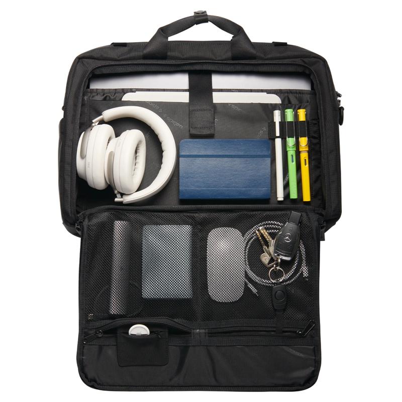 Bär din teknik och dina dagliga nödvändigheter i en väska som ser elegant ut i styrelserummet men som packas som kabinbagage. Spigen KD300 kombinerar PU-belagd hållbarhet med resevänliga detaljer som en frontpanel med platt öppning, AirTag-ficka och en rem som kan fästas på en vagn, vilket ger pendlare och frekventa resenärer en lösning som gör allt.