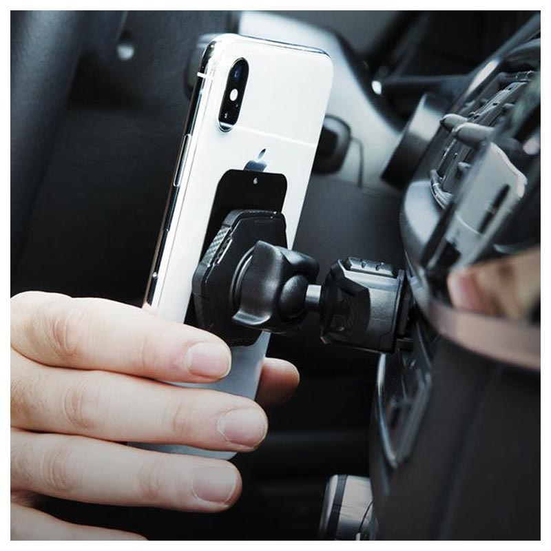 Kuel QS24 Magnetisk bilhållare i CD platsen är otroligt tunn, men också exceptionellt funktionell för sin storlek. Fyra kraftfulla magneter håller din mobil säkert på plats under körning och en 360-graders roterande kulled säkerställer bästa visningsvinkel oavsett synvinkel.