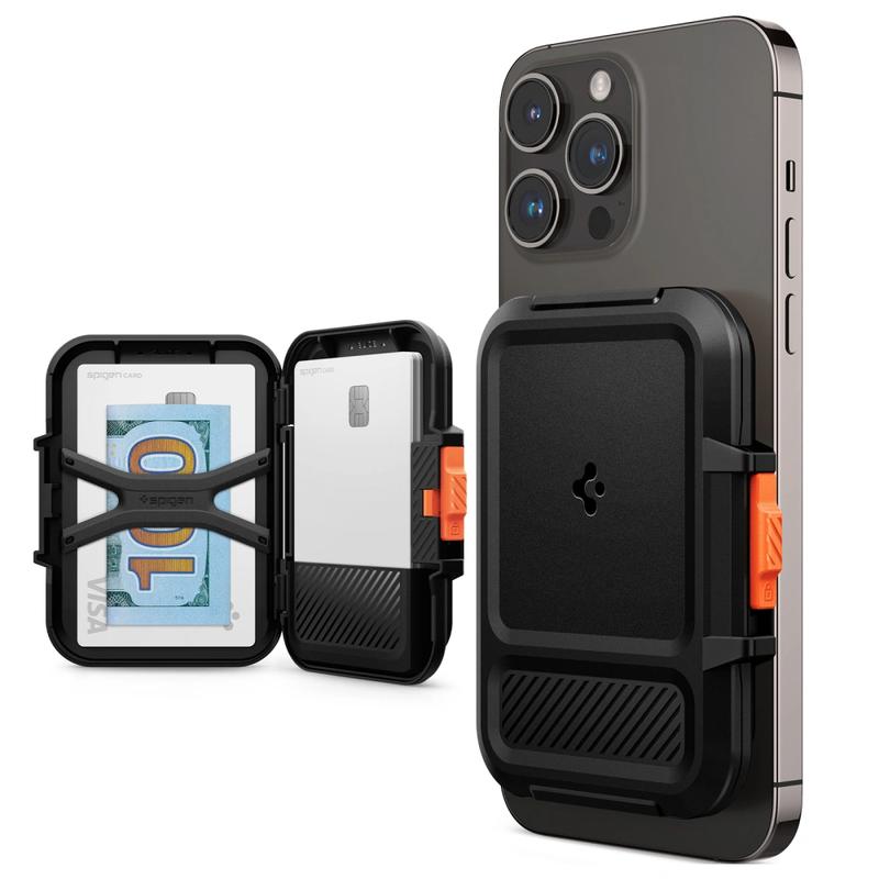 Spigen Lock Fit MagSafe plånbok och korthållare - plats för upp till 6 kort, rem för kontanter