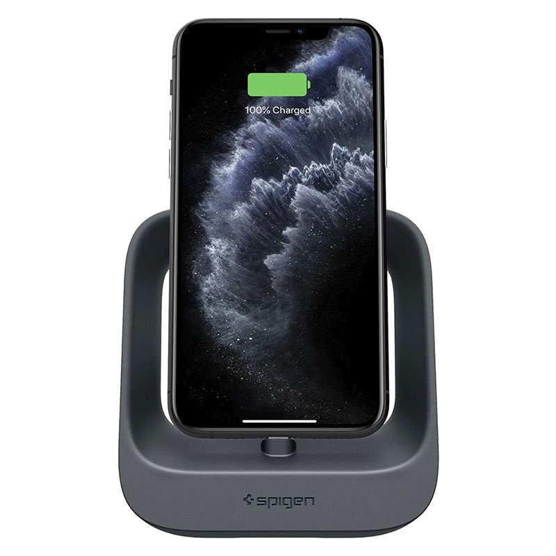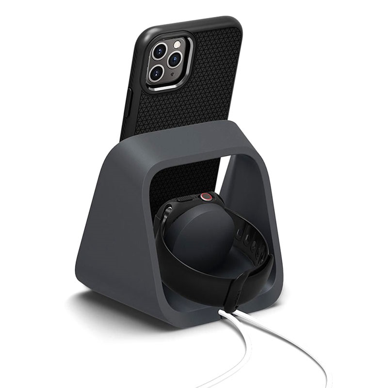 Ett funktionellt Spigen S316 stativ som är tillverkat för laddning av Apple Watch och iPhone. Detta stativ är praktiskt för att sätta fast och ladda hemma eller på resor. S316 modell är tillverkad av TPU material, vilket gör den stabil, praktisk och håller din enhet vid en bekväm visningsvinkel.