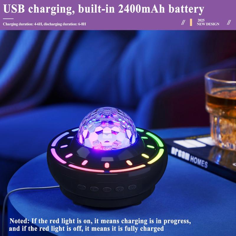 SSL001-C Bärbar stjärnprojektorlampa - 12-läges RGB, Bluetooth 5.0-högtalare och 2 400 mAh USB-laddningsbart batteri