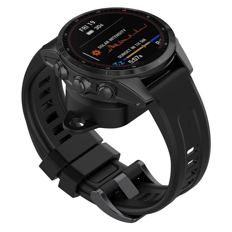 - Dockningsstation: håller klockan i ett stabilt, upprätt läge under laddning