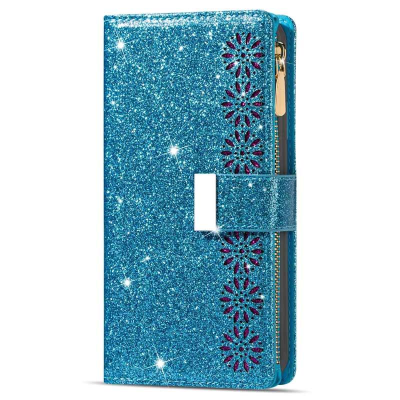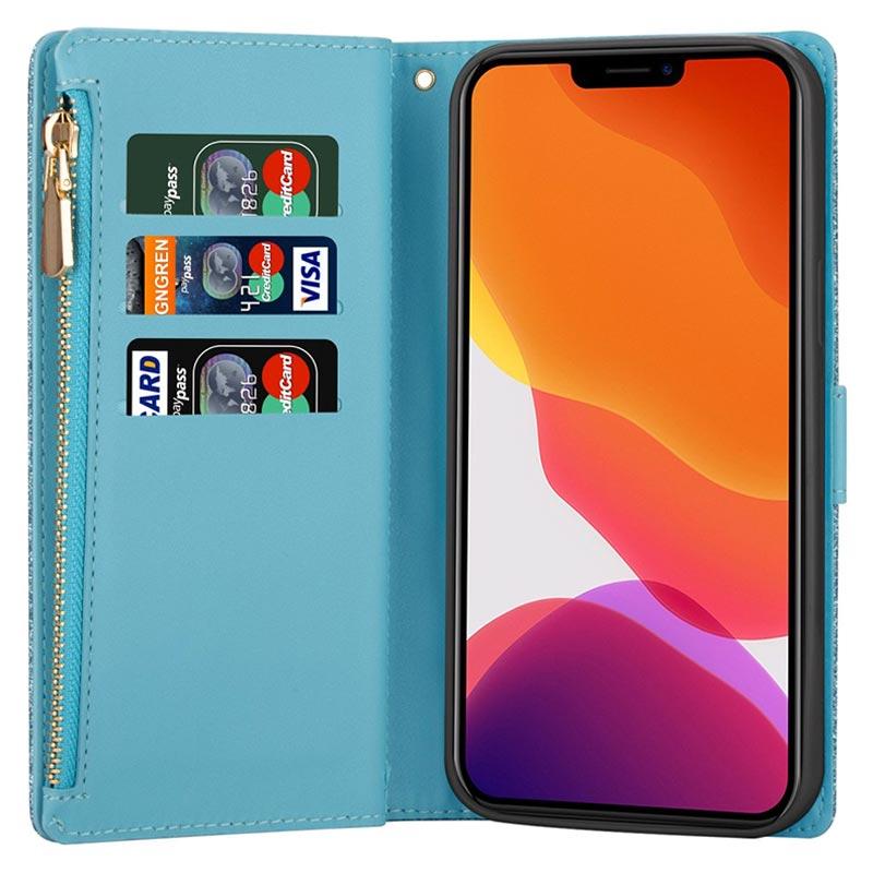 Klä in din iPhone 14 Plus i detta vackra plånboksfodral som är utrustat med flera praktiska fack. Detta plånboksfodral har ett stöttåligt TPU-skal på insidan som ger ett utmärkt mångsidigt skydd mot stötar och fall. Bortsett från flera kortfickor och ett fack för kontanter finns även ett fack med blixtlås som gör att du kan förvara kort, kontanter och småsaker tillsammans med mobilen. Den glittrande designen ger din iPhone 14 Plus en snygg och unik look, och den avtagbara snodden gör att du kan bära med mobilen på ett säkrare sätt.