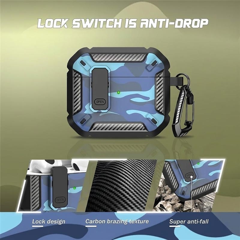 Stötsäkert TPU-fodral i kamouflage med karbinhake för AirPods 4 - med stöd för trådlös laddning
