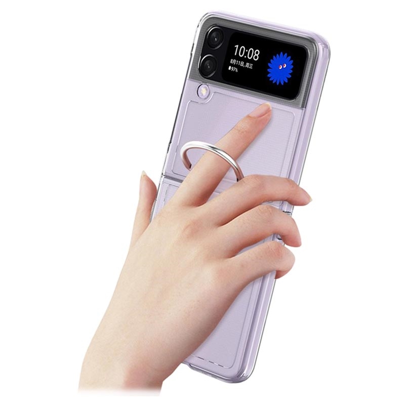 Det är tillverkat av plast och utrustat med en metallring och kommer att skydda din Samsung Galaxy Z Flip4 mot repor, stötar, fall och smuts. Upphöjda kanter runt skärmen och kameran som förebygger repor, medan metallringen ger dig ett bättre grepp om mobilen och kan användas med en karbinhake eller rem (ingår ej).