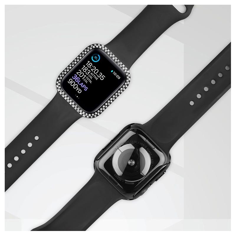 Strass Dekorativa Skal med Härdat Glas Skärmskydd till Apple Watch SE (2022), Apple Watch SE, Apple Watch Series 6, Apple Watch Series 5, Apple Watch Series 4