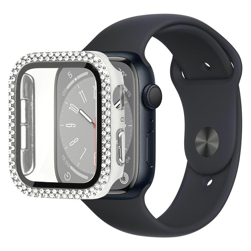 Gör din Apple Watch Series 9/8/7 extra glammig och skydda den med detta attraktiva och skinande skal med inbyggt skärmskydd. Detta supertåliga plastskal är utrustat med ett kristallklart skärmskydd i härdat glas som ger ett komplett skydd till din Apple Watch Series 9/8/7. Glittrande och snygg strass ger klockan en ny läcker look som drar till sig uppmärksamhet.