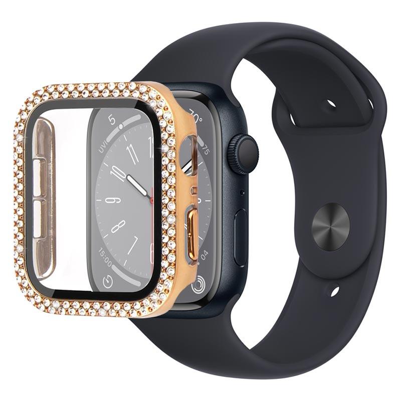 Strass Dekorativa Skal med Härdat Glas Skärmskydd till Apple Watch Series 9, Apple Watch Series 8, Apple Watch Series 7
