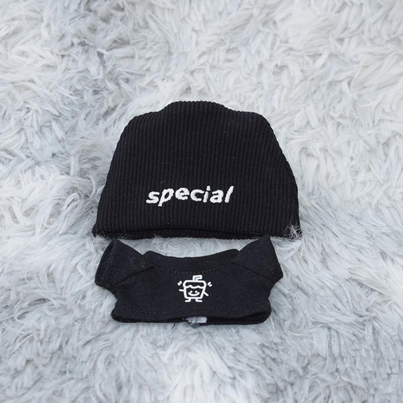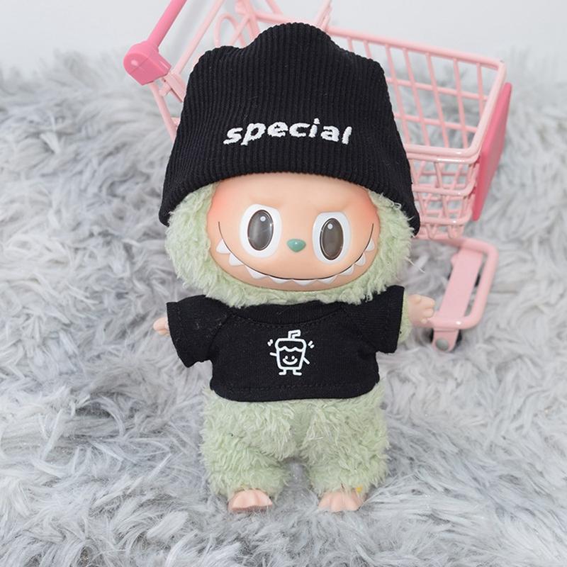 Street Style Kläder för Labubu Doll 17cm - Stickad mössa och grafisk t-shirt kostym