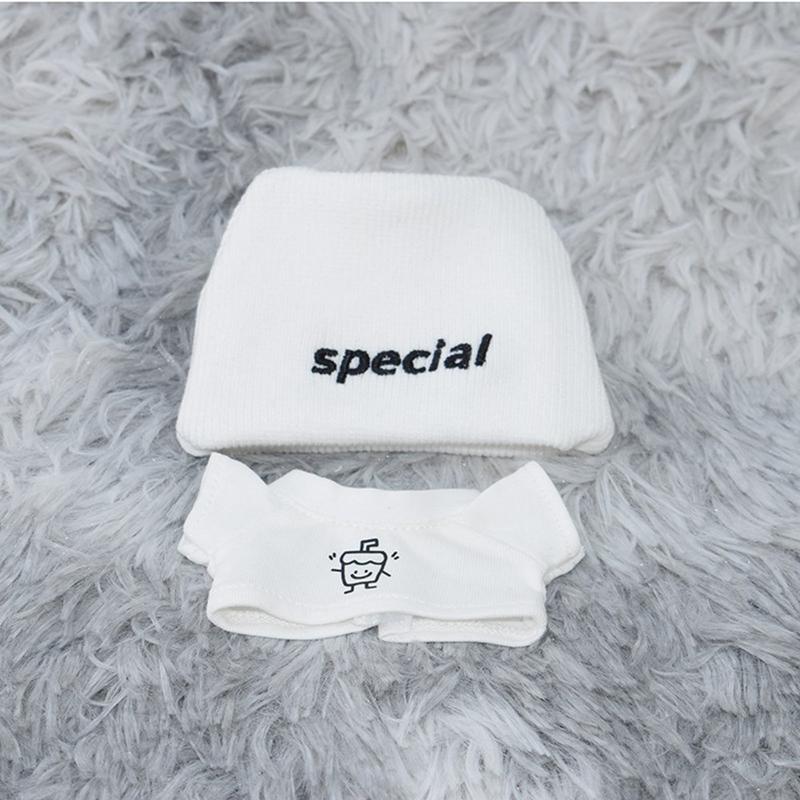 Street Style Kläder för Labubu Doll 17cm - Stickad mössa och grafisk t-shirt kostym