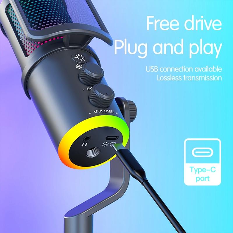 SU9 RGB Gaming Microphone ansluts direkt via USB eller Type-C för omedelbar installation. Inga drivrutiner eller komplicerad installation krävs - det är bara att plugga in och börja spela in. Den är kompatibel med datorer, bärbara datorer och smartphones och är perfekt för spel, streaming och onlinemöten.