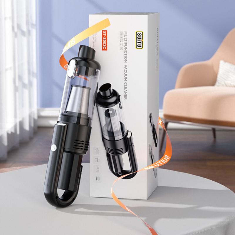 Suitu ST-8003CG Bärbar 2-i-1 dammsugare för bil/hem - 6000Pa våt och torr handhållen dammsugare med golvborstar, USB-C laddning