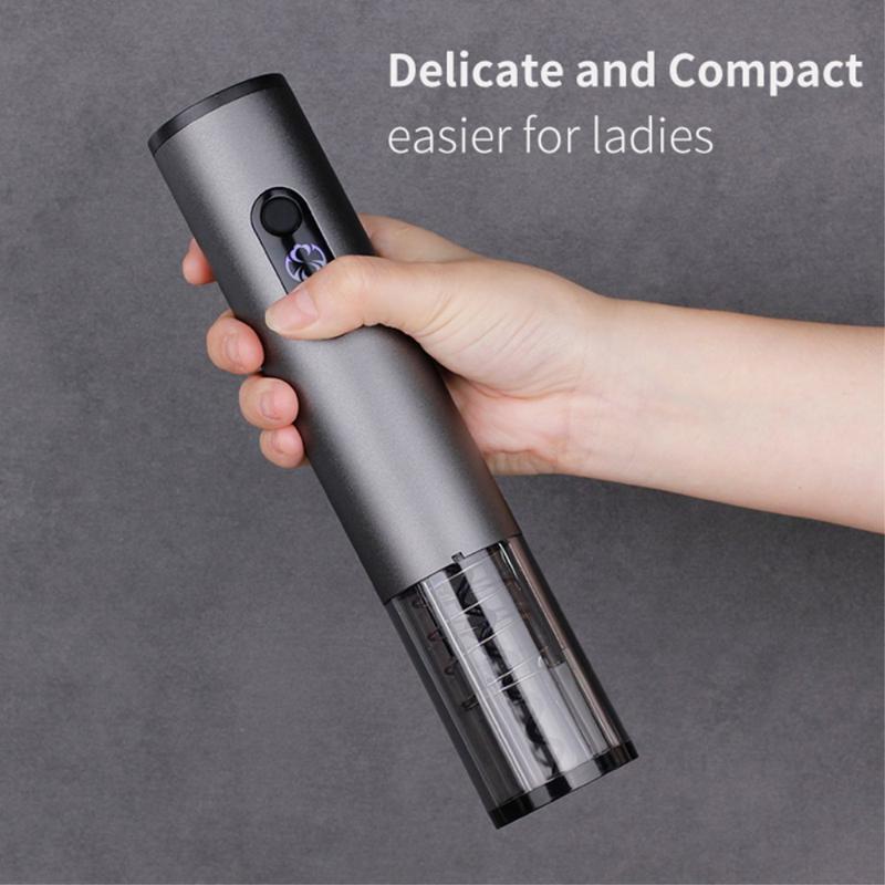 Öppna vinflaskor utan ansträngning med den uppladdningsbara elektriska vinöppnaren SW-C006U. Med en enkel knapptryckning tar den bort korkar på några sekunder - vilket hjälper dig att undvika trasiga korkar och stökiga diskussioner vid bordet. Den medföljande folieskäraren gör det snabbt att ta bort förslutningar, så att du är redo att hälla upp snabbare vid middagar, fester, bröllop eller baruppsättningar. Den är utformad för att vara kompakt och lätt att förvara, vilket gör den till ett utmärkt köksverktyg i vardagen och en omtänksam present. En full laddning kan öppna upp till 80 flaskor (enligt uppgift) och öppnaren laddas bekvämt via USB-C. Den levereras med 4 uppladdningsbara AA nickel-kadmiumbatterier, så att du kan använda den direkt ur lådan.