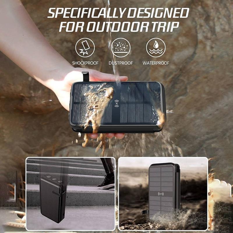 Driv dina äventyr - och din smartphone - direkt från solen med SY-L3S4W vikbar powerbank med solpanel. Fyra högeffektiva monokristallina paneler levererar upp till 8 W solkraft och laddar det integrerade litiumbatteriet på 16 000 mAh medan du vandrar, campar eller pendlar. När hastigheten är viktig kan du ansluta till PD 20W USB-C-porten eller använda 10 W Qi-dynan för kabelfri laddning. Inbyggda Lightning-, USB-C- och USB-A-sladdar gör att du slipper trassliga sladdar, och det robusta ABS-höljet är stöt-, damm- och IP-klassat vattentätt - redo för allt från regn i Alperna till sand på stranden. En ljusstark LED-ficklampa med SOS-stroboskop gör powerbanken till en nödsignal efter mörkrets inbrott.
