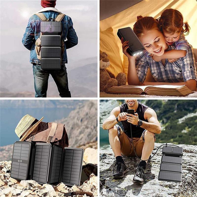 - 8 W vikbara solpaneler - Fyra monokristallina blad fälls ut för att fånga dagsljuset och ladda batteriet när du vilar.