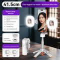 Stativbenens automatiska öppningsfunktion ger snabb stabilitet när stativet ställs ner, medan den utdragbara designen och den roterbara telefonhållaren gör det enkelt att växla mellan olika fotograferingsvinklar och format. Den medföljande Bluetooth-fjärrkontrollen hjälper dig att ta bilder handsfree, och de dubbla fyrkantiga fyllnadslamporna ger extra ljusstyrka för selfies, videosamtal och inspelningar.