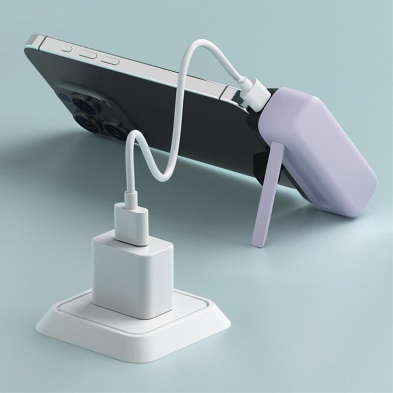 Den är inte bara en bärbar miniladdare, utan har även en stativfunktion som kan användas som mobiltelefonstativ