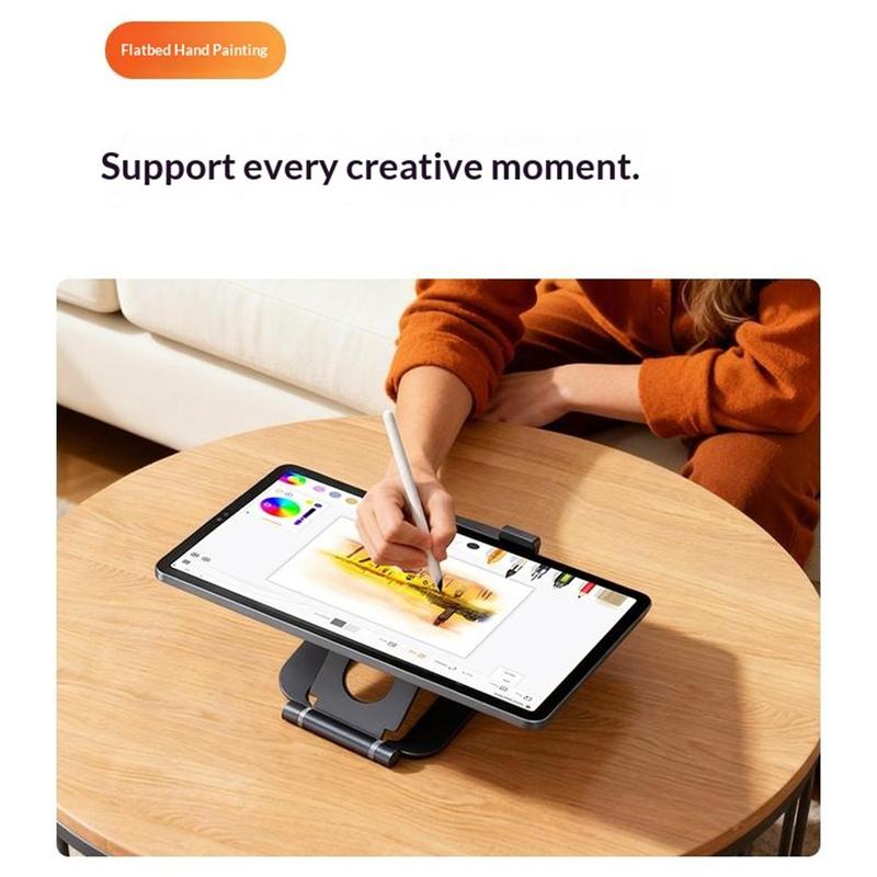 Det hopfällbara stativet T2 MAX för mobiler och surfplattor är ett praktiskt skrivbordsstativ som är utformat för att göra arbete, studier, streaming och surfning bekvämare. Det passar både mobiler och surfplattor och erbjuder en stabil och justerbar plattform för daglig användning hemma, på kontoret eller på resan. Den hopfällbara designen och konstruktionen i aluminiumlegering gör det till ett smart val för användare som vill ha ett pålitligt stativ som är lätt att ta med sig och förvara.