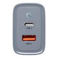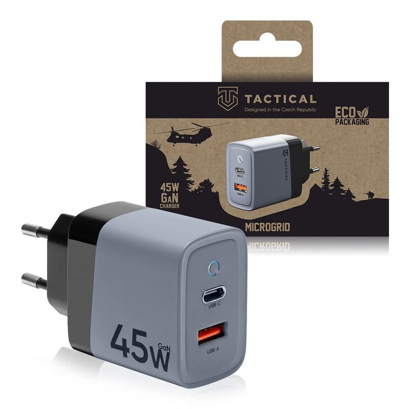 Tactical Microgrid GaN 45W väggladdare med PD3.0 USB-C, QC3.0 USB-A-portar