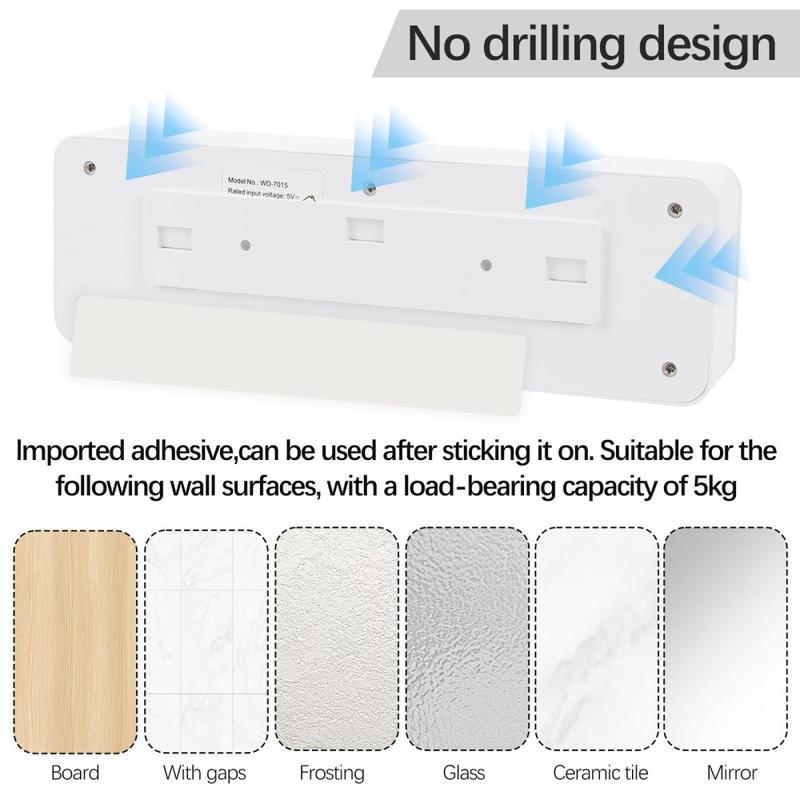 - Väggmonterad design - Enkel självhäftande installation sparar utrymme, kräver ingen borrning och skyddar badrumsväggarna.